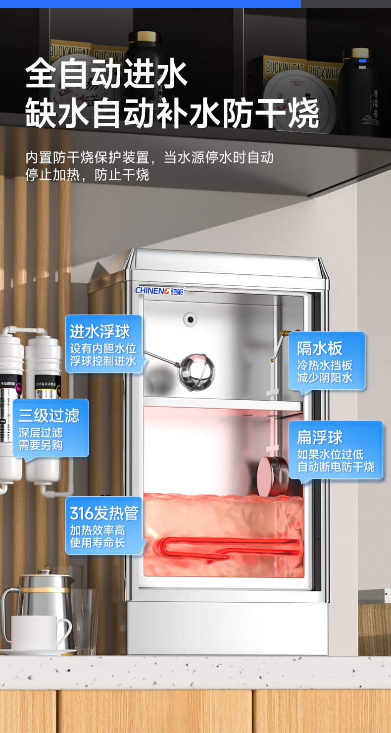 自动进水:缺水自动补水防干烧