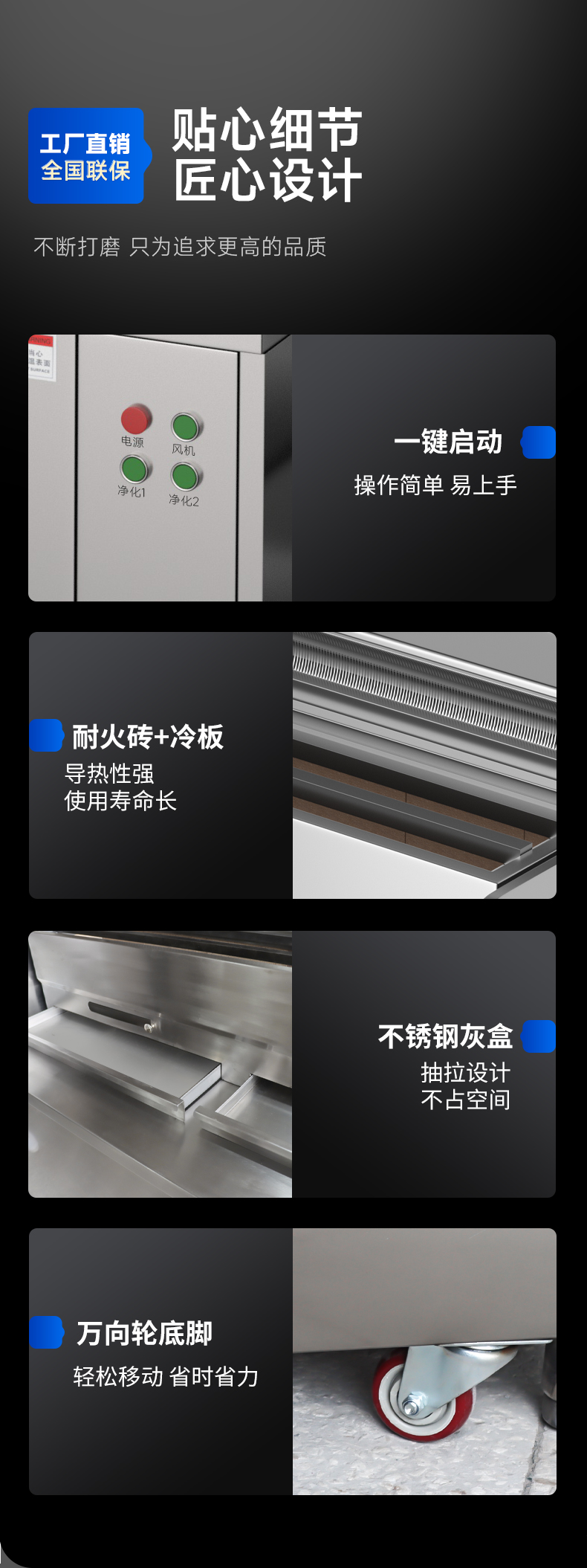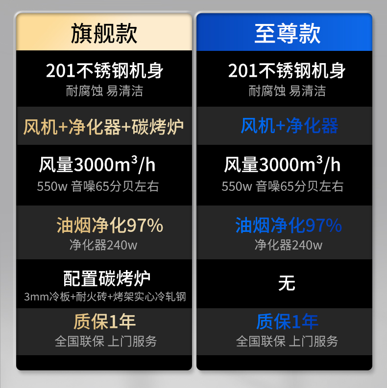 配置:风机+净化器*2+炭烤炉